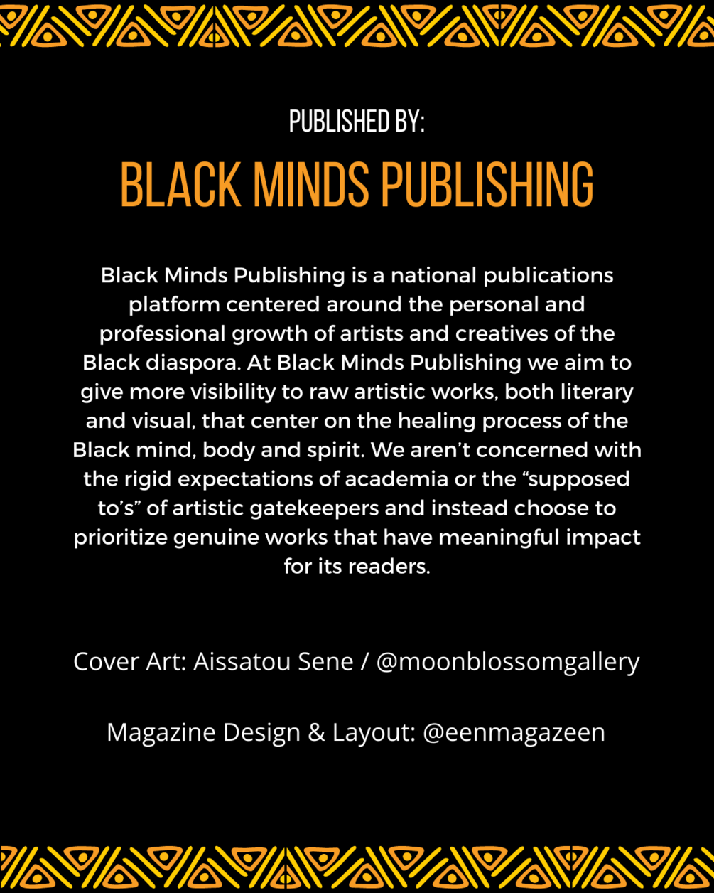 Black Minds Mag Issue #21: New Body is a collection of works centered around all the things that move in, on and through our bodies. It’s a collection of works on reckonings and reclamations.